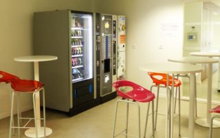 Cet espace est équipé de 2 distributeurs : boissons chaudes et froides et confiseries, biscuits et sandwichs. A proximité vous trouverez le restaurant solidaire EOLE, des commerces et lieux de restauration.